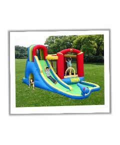 Transforma orice zi torida de vara intr-una racoroasa si plina de distractie. Toboganul gonflabil asigura o multime de activitati distractive: catarare, alunecare, tunel, loc de joaca cu bile, loc de aruncat la tinta, cos de baschet, tun cu apa, si racorire in piscina de la baza.Spatiu de joaca...